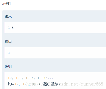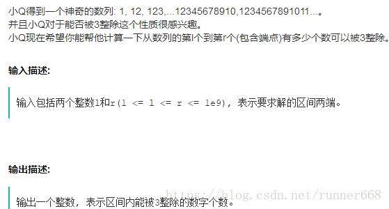 发现在区间[1,x]之间共计有 fuck(x) = (x+2)/3 个1,剩下的都满足要求
