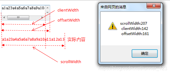 scrollWidth:对象的实际内容的宽度,不包边线宽度,会随对象中内容超过可视区后而变大。