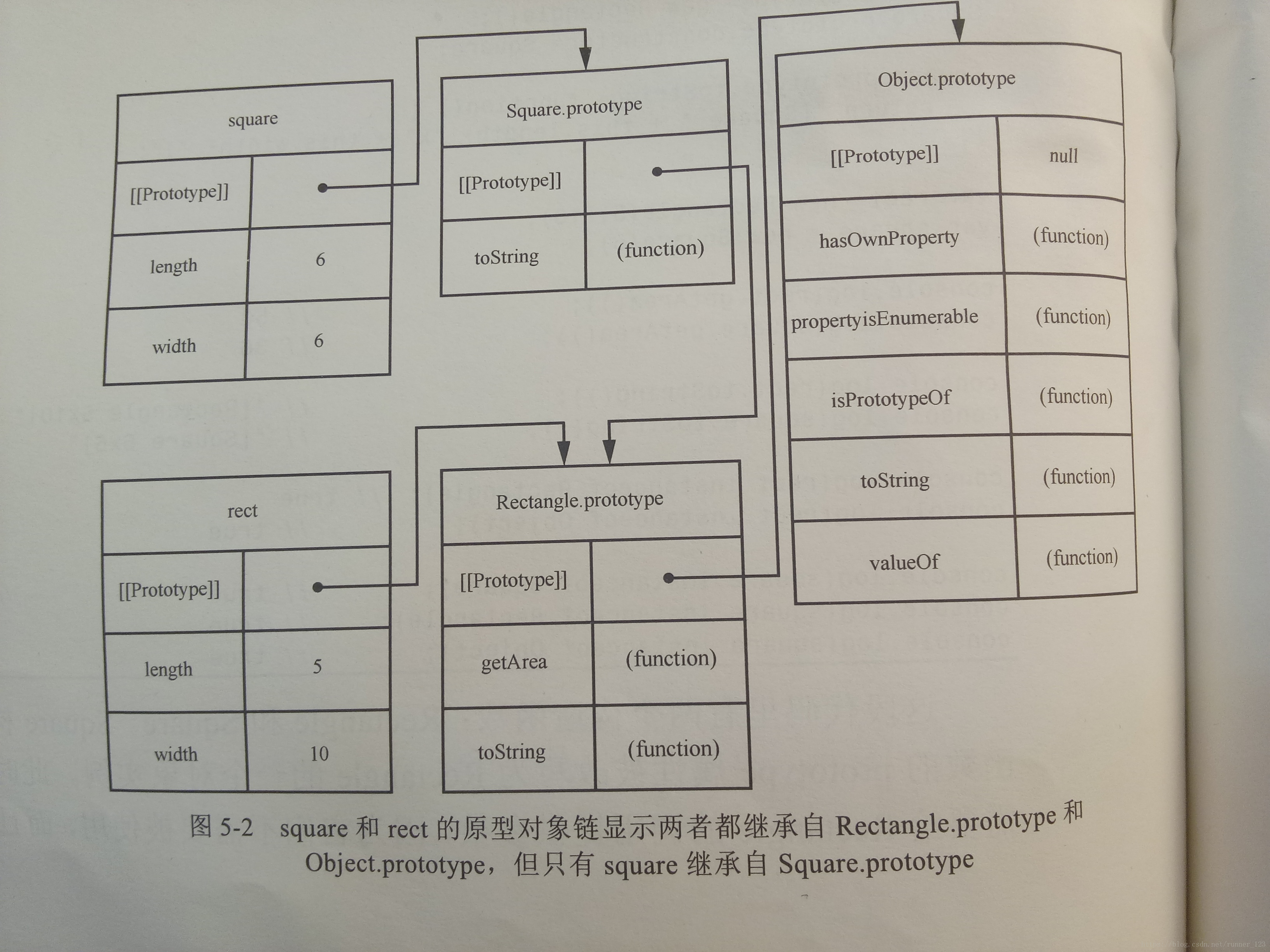 console.log(rect.toString()); // "[Rectangle 5 * 10]", 但如果是Square.prototype = Rectangle.prototype,则这里会"[Square 5 * 10]"