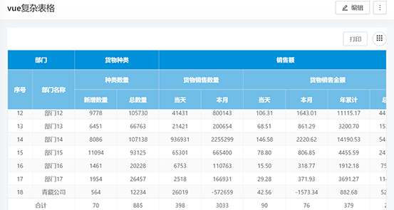vue 复杂表格