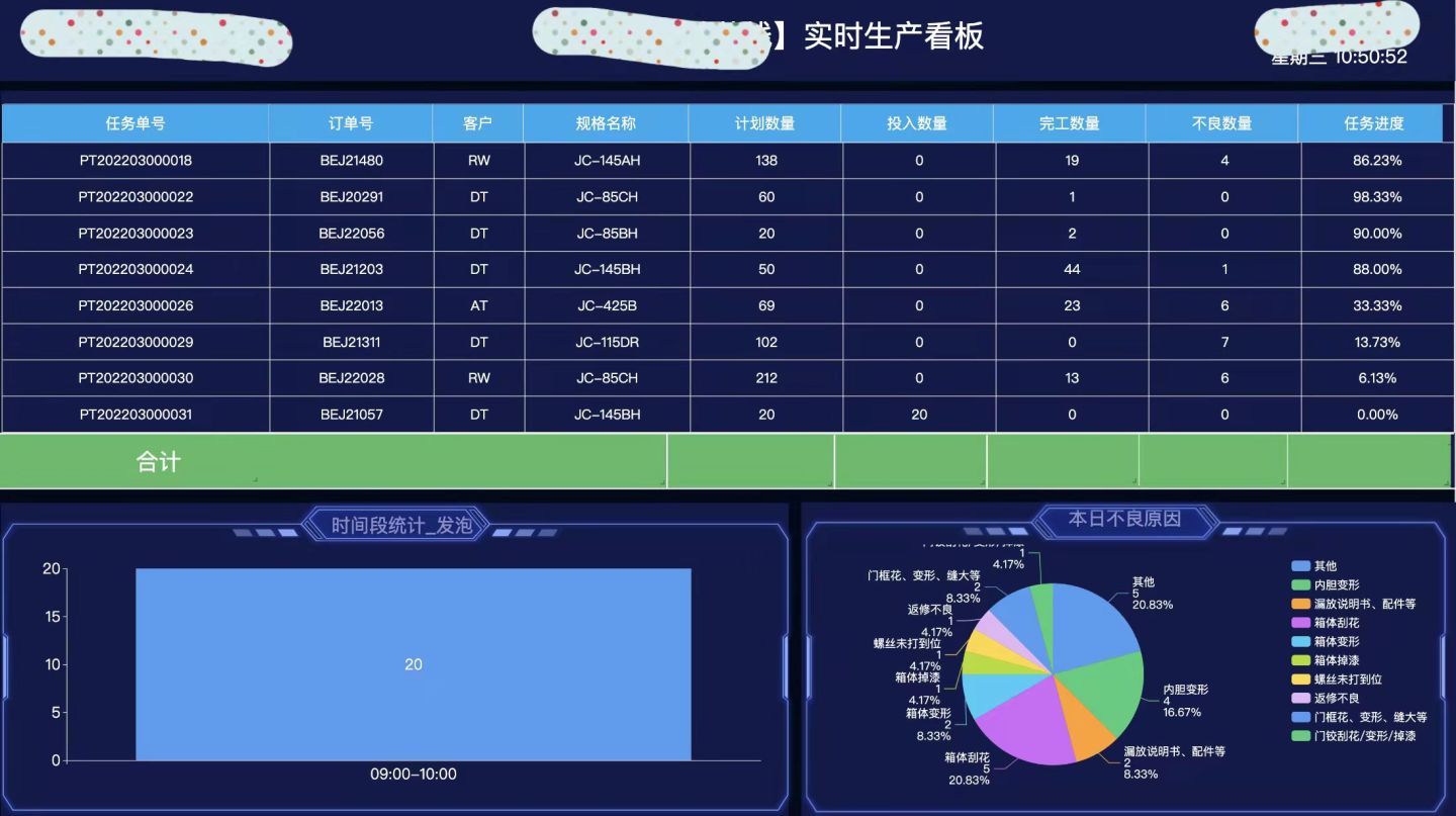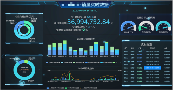 下面展示一些实时报表、实时看板