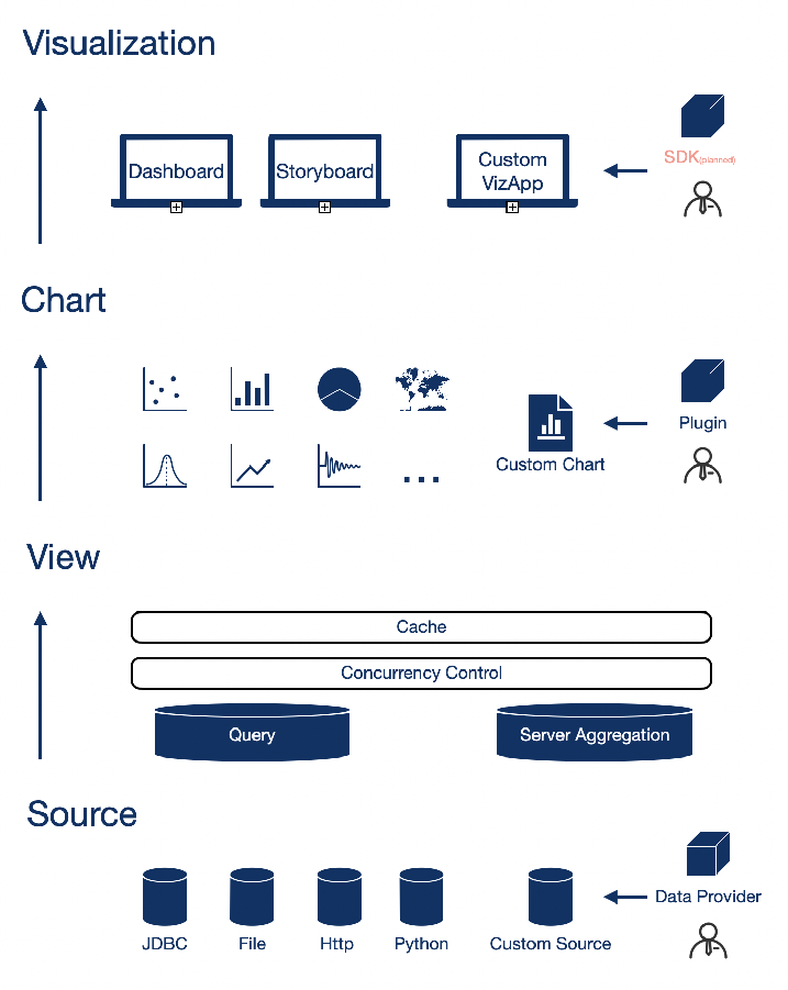 datart 设计了完善的图表插件机制,方便技术用户对 BI 系统的核心能力 - 分析图表进行便捷的定制化扩展;摆脱了传统 BI 软件需要对整个应用进行二次开发来定制图表的弊端。