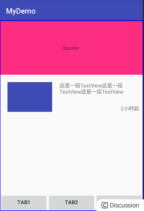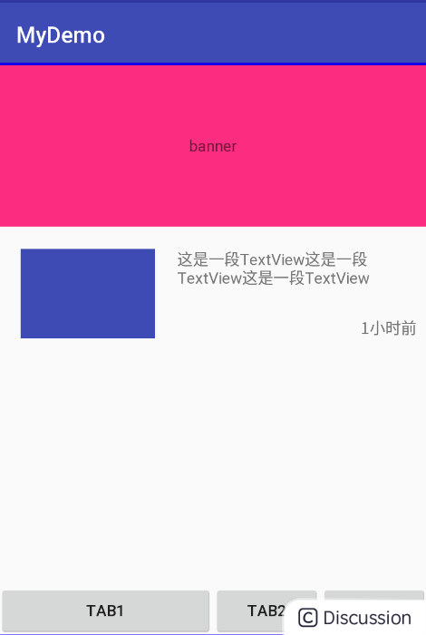 我们现在需要在底部增加3个tab,并让它们实现均分。这有点像LinearLayout和weight的意思。我们先看一下效果图是怎样的: