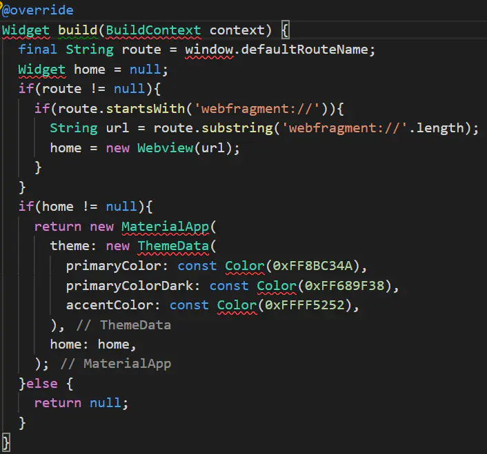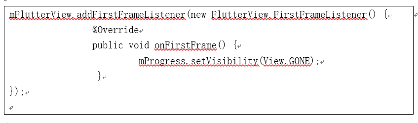 FlutterModule的main.dart根据对应的参数来调用Dart创建界面。由于FlutterModule在master分支,还没beta,存在黑屏问题,可以通过如下方式处理,在加载界面是显示一个ProgressBar,在FlutterView第一帧出来时再隐藏ProgresBar。