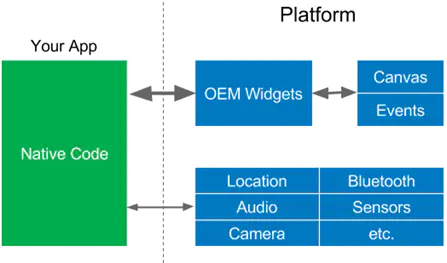 传统的原生开发使用Native语言和Platform进行交互,通过调用平台API来实现App的功能。