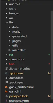 Flutter的工程目录如上所示,Android和iOS目录分别存放了原生代码,已Android为例,仅需要一个MainActivity作为主界面入口;lib目录存放了Flutter的源码;main.dart是整个应用的入口;pubspec.yaml存放了配置信息。