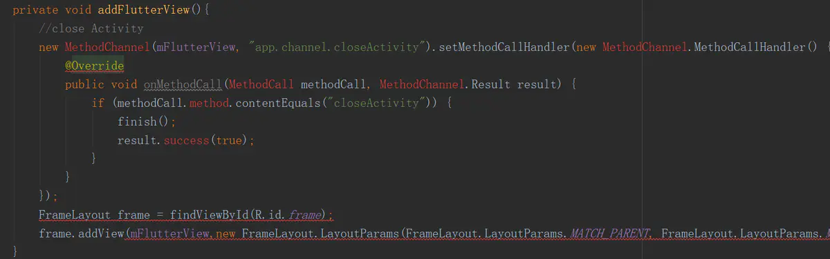 通过Flutter.createView创建View,然后给FlutterView设置MethodChannel进行通信,最后将Flutter加入到原生界面。