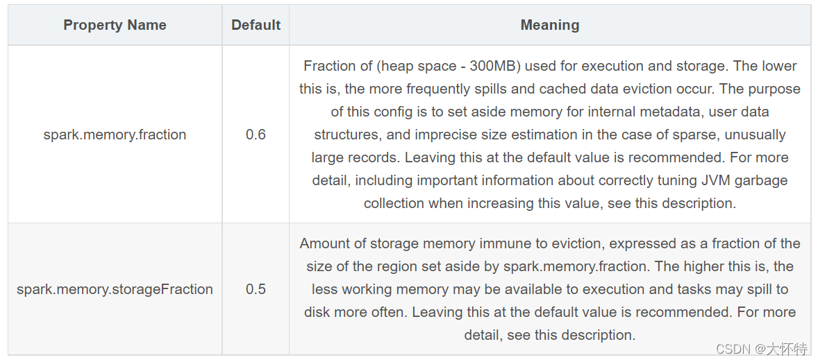 --conf spark.memory.storageFraction=0.4 \