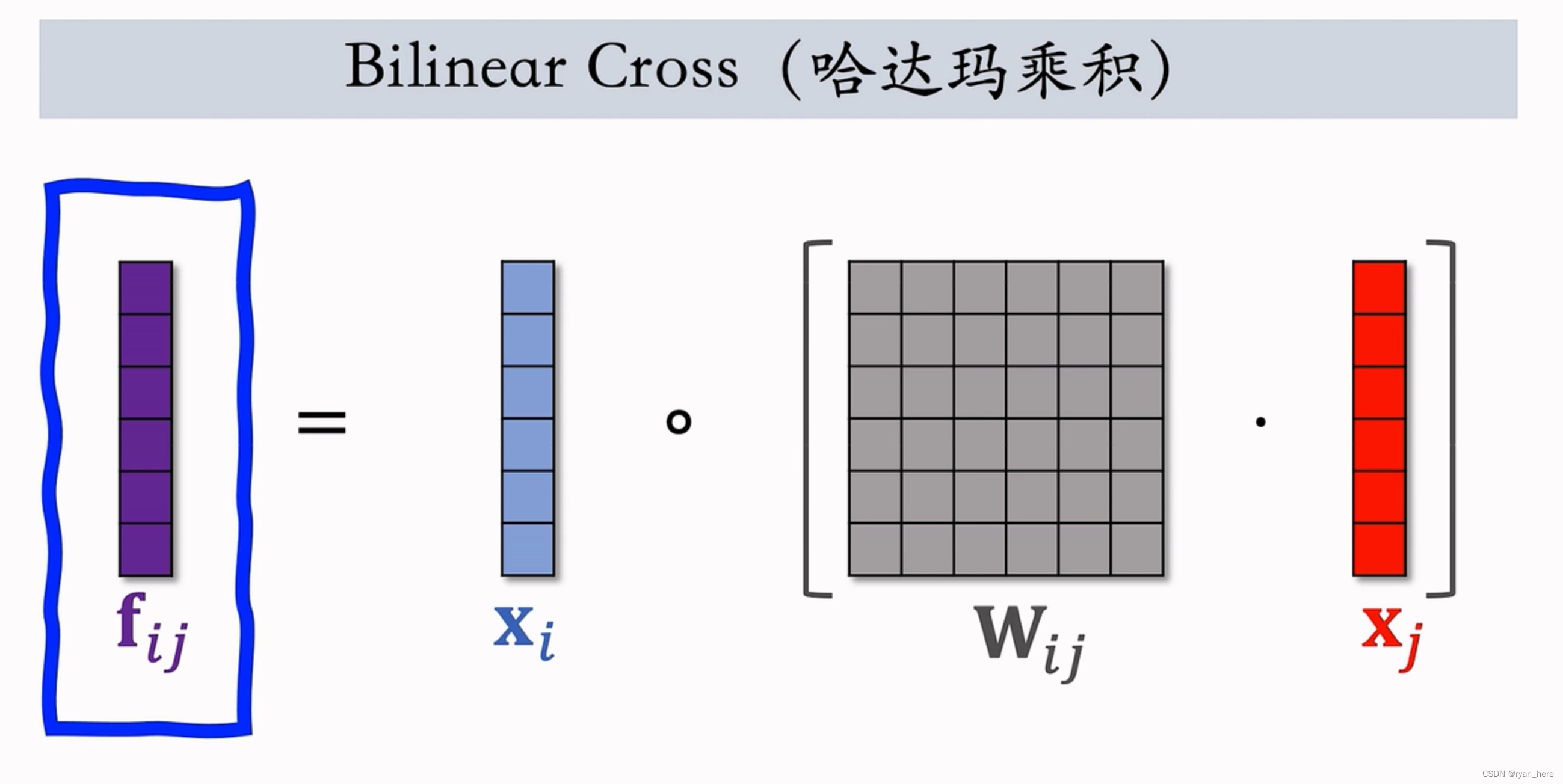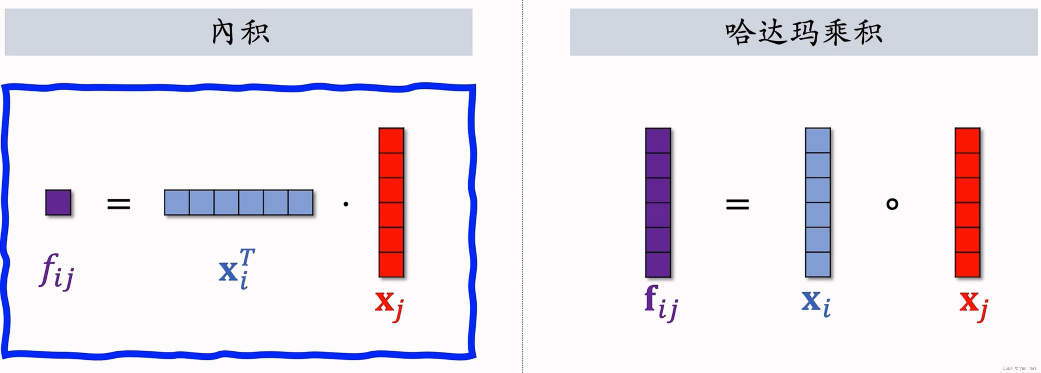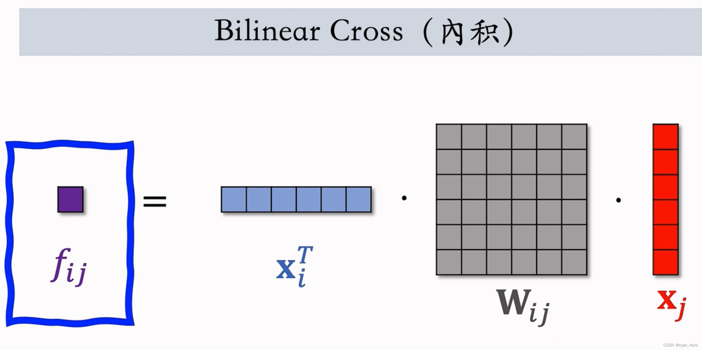结果: m * m 个实数, m fields 对应 参数矩阵(参数太大,需要人工指定特征做交叉)