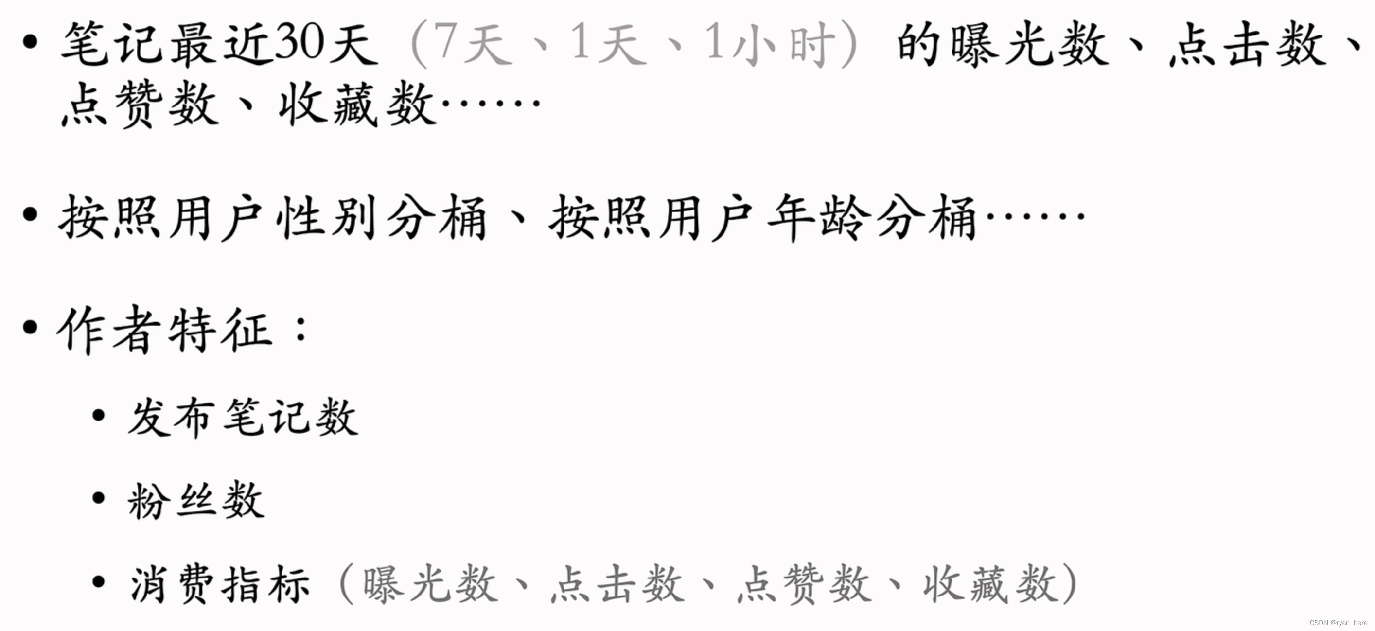 - 用户侧指标:新笔记消费指标、大盘消费指标