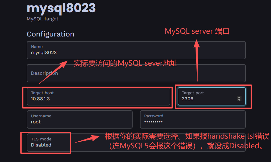 如果碰到TLS stream error,把TLS mode 设为 Disabled