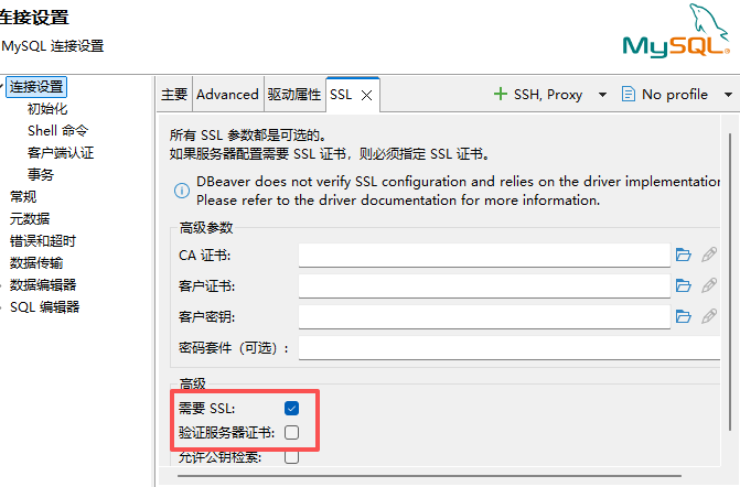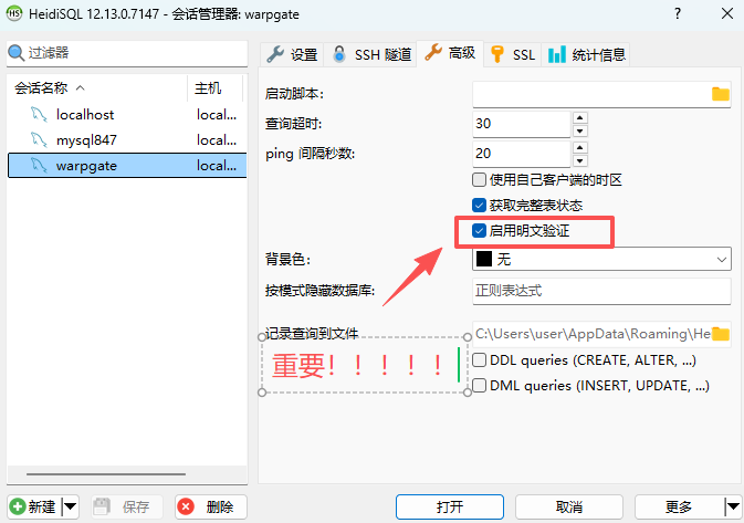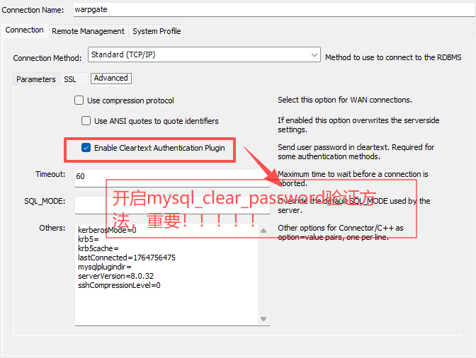 3. MySQL客户端软件要开启ssl和mysql_clear_password明文密码选项