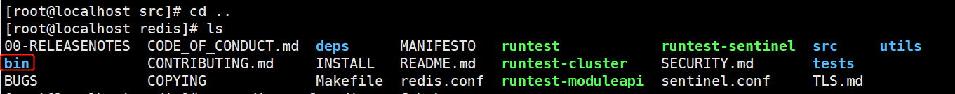 cd /opt/redis make cd /opt/redis/src make install PREFIX=/opt/redis #执行成功后在原来redis目录中会出现一个bin目录