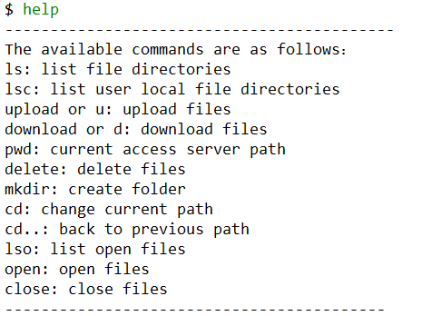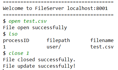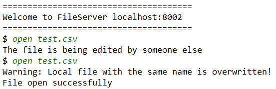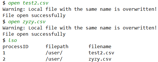 打开文件是想实现一个类似网盘等在线编辑的功能,但因为条件有限,不可能实现一个可以在线查看的软件,也很难把 Linux 下的 VIM 移植。因此这里只是模拟了一个打开文件的过程,相当于用户把目标文件下载到本地,然后为文件加上了文件锁,这个锁不会自动释放,当用户去编辑完文件后保存退出,输入 close 指令后才会释放。
