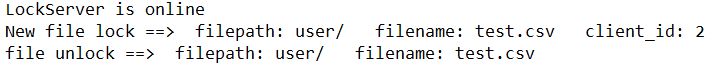 锁服务器会根据接收信息中目标文件的路径和文件名判断这个文件是否已经被其他客户端上锁,如果上锁了就会返回 success=1,也就是失败。否则就会在锁记录文件中加上一条记录,并返回 success=0 成功信号。