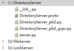 项目内包含多个文件夹,其中 Client 为客户端的代码。包含服务器的部分如下,分为三种服务器,每个服务器包含 proto 文件及编译出的 python 文件,编译 proto 可以使用指令: