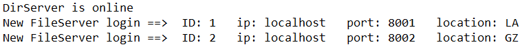 目录服务器是这个系统的核心,他负责记录所有登录在线的文件服务器。文件服务器上线的时候需要和目录服务器发送登录消息,目录服务器会把文件服务器加入到自己的目录表中: