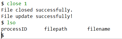 当用户编辑完文件后,用户需要输入指令 close 手动关闭文件。在关闭文件前,需要输入 lso 查看所有正在运行的文件: