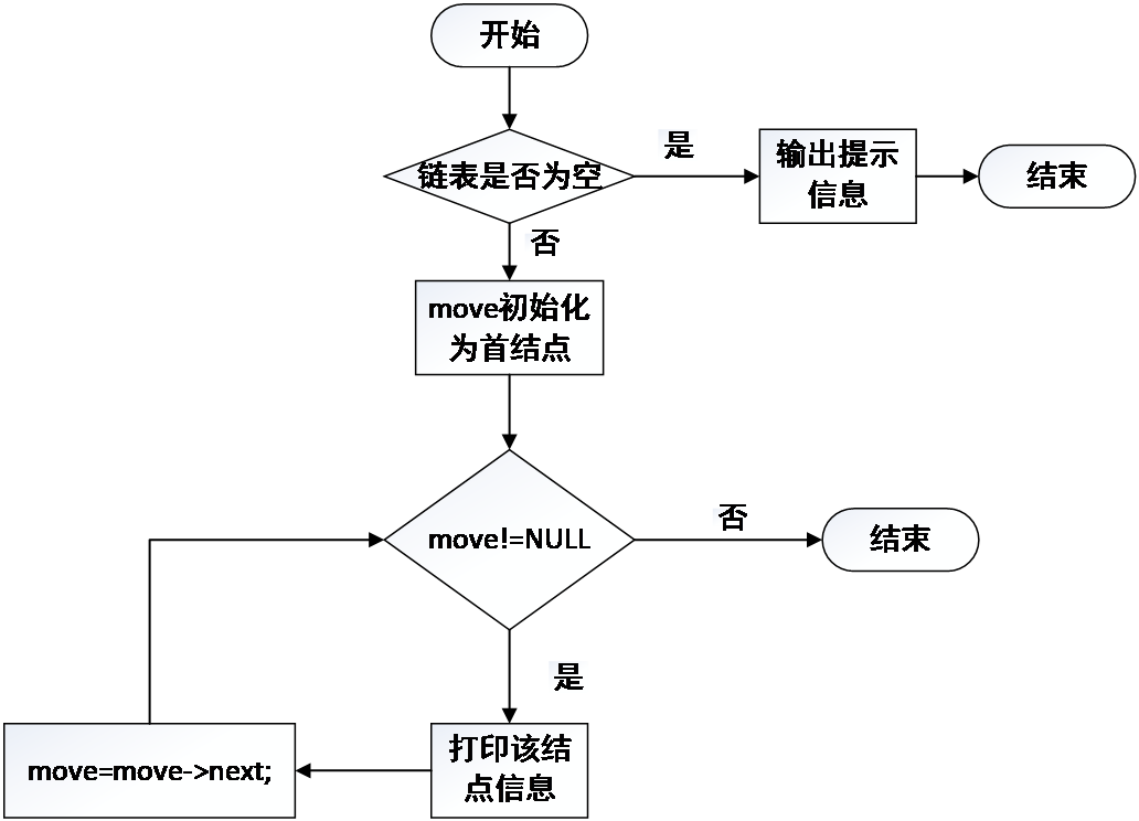 //后插法初始化为首结点; 前插法初始化为头结点,用move->next指向链表的每个结点