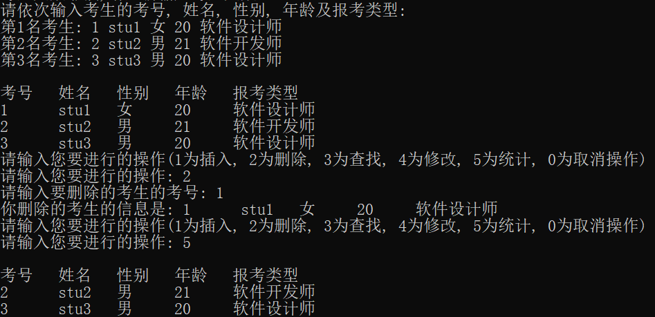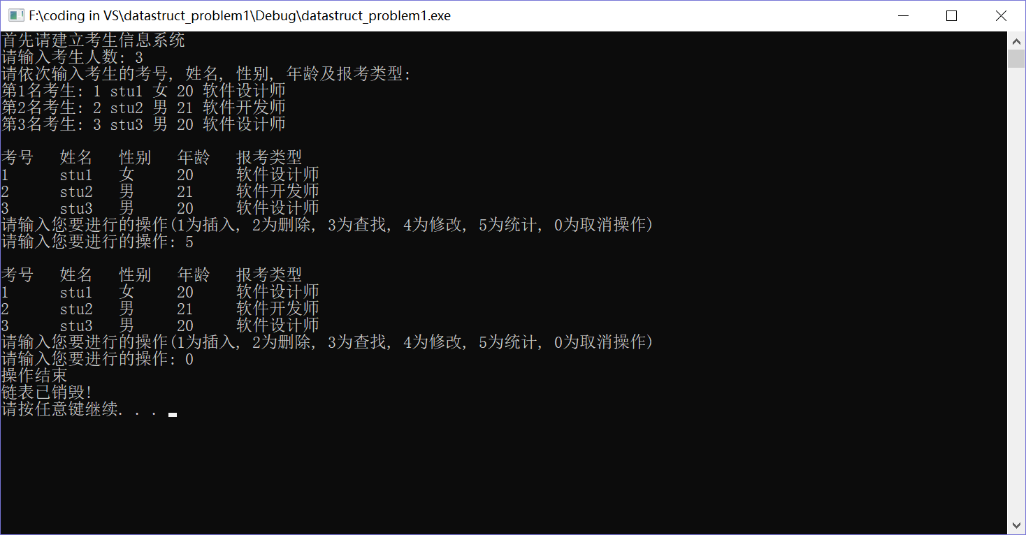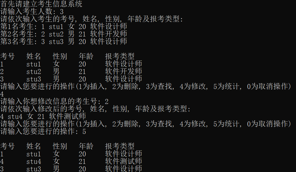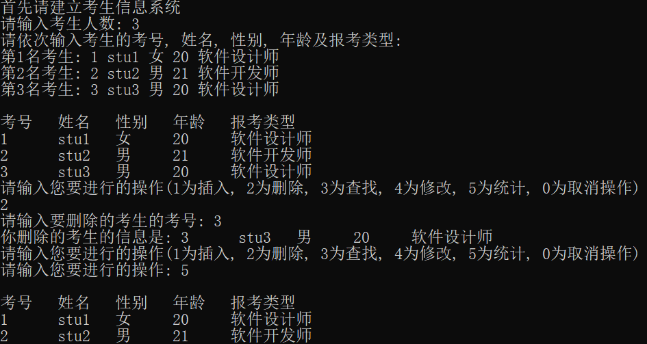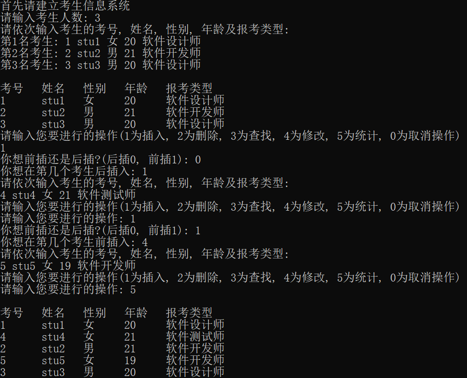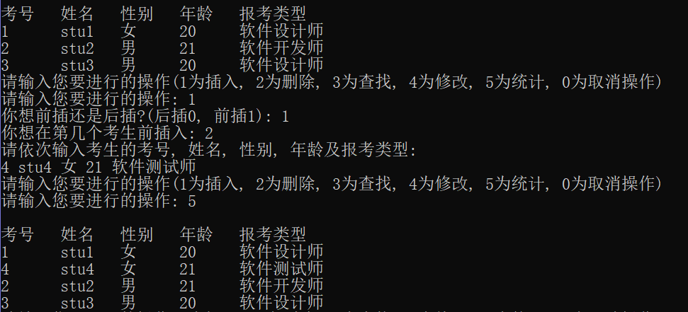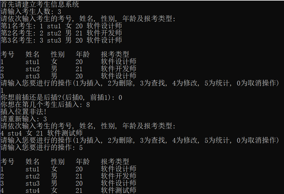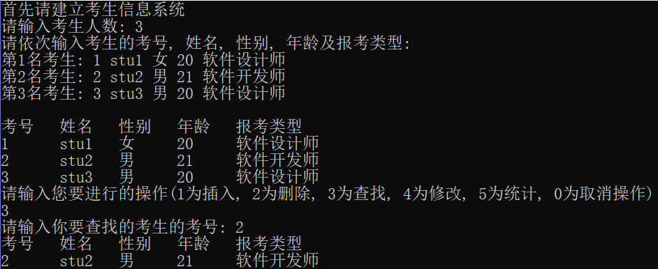 作为一个最简易的考试报名系统,首先应该有的功能就是输入同学们的考试报名情况并且可以予以显示。