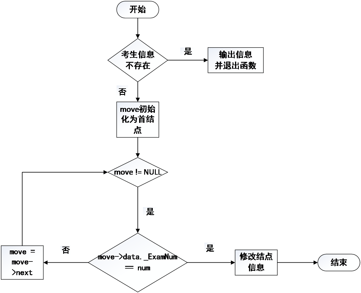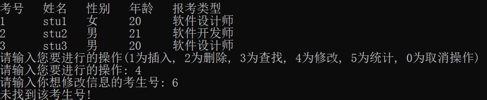 //修改考生号为num的考生信息, 否则输出相应的信息提示