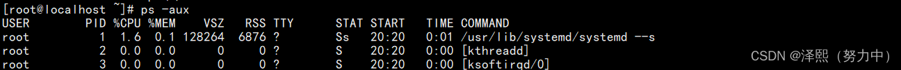 方法一:ps -aux,主要用来查看进程占用系统资源的情况