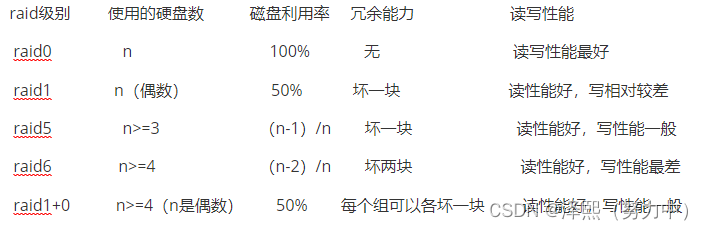 磁盘的组成方式不同,也就是不同的raid级别: