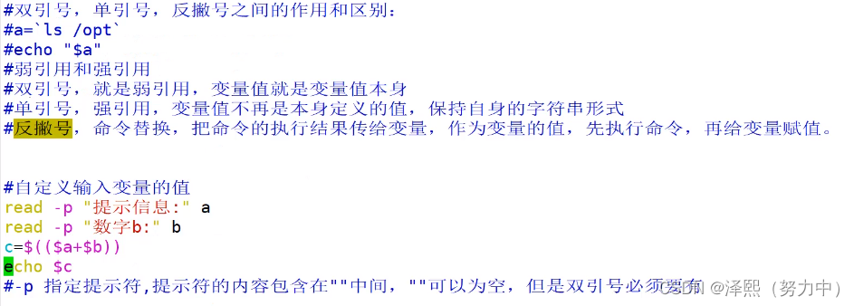 可执行语句:linux的命令都可以作为可执行的语句,一行一行的往下写,一行只能一个可执行的语句
