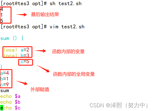 加了local后,就是函数内部的变量,而不再是全局变量,外部的赋值会替换内部的变量值