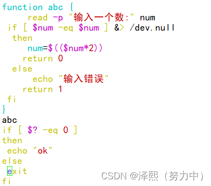 return的作用:只能写在函数内部,目的是从函数的内部获取一个返回值,用来判断是否继续执行下一个脚本。这个时候echo $?不再是判断执行结果,只是一个函数内部的返回值。
