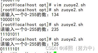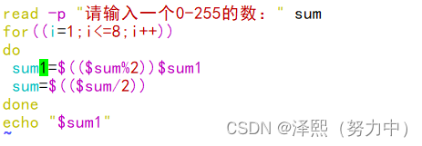 使用循环语句,将0-255的十进制数转换为8位的二进制数