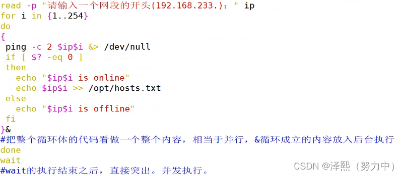 测试一个网段,C类私有地址,32位的网段,测试可以ping通的地址,保留到/opt/hosts.txt;如果不通,提示不通即可