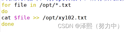 利用for循环,将/opt目录下,所有以.txt结尾的文件合并成一个文件,合并到xy102.txt