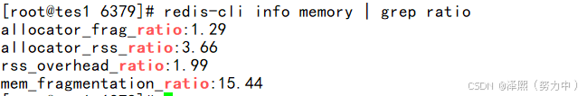 表示占用五路内存的额外的开销的比例,这个值越小越好,redis实际使用的物理内存比rss更接近