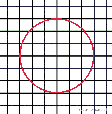 我们以某个小方格的一个顶点为圆心画一个半径为