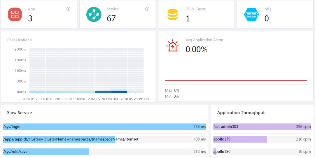 实时告警通知,暂未测试,我个人希望有 服务异常、JVM异常、慢服务、高负载等的订阅和通知功能,然而貌似这两个APM都没有很直观的展示出有这方面的能力。