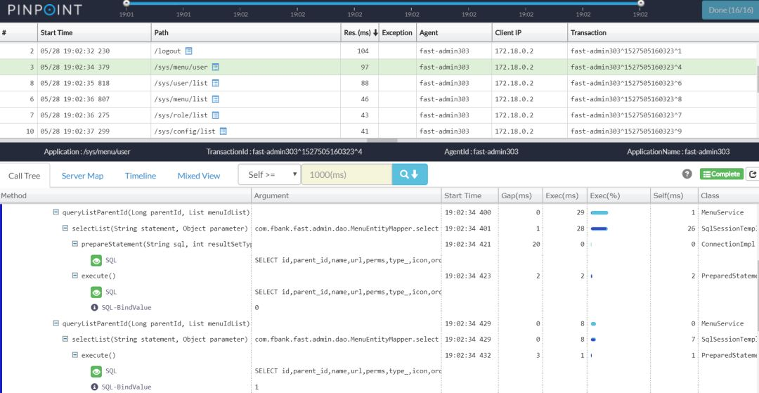 可以看到各span的耗时和类名、方法名(如果DB操作,可以打印出sql和参数)