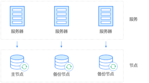 MongoDB 服务采用三节点组成复制集部署架构,三个节点位于不同的物理服务器,数据实时同步;基于 Raft 协议选主策略,一旦 Primary 节点发生故障,快速实现故障转移;任意节点宕机,系统自动完成故障节点的系统恢复和数据同步。