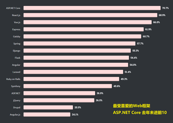 Stackoverflow 2020 年度开发者调查结果出炉,ASP.NET Core 登顶最受喜爱的Web 框架(ASP.NET Core 去年未进前10)!.NET Core 蝉联最受喜爱的非Web框架!