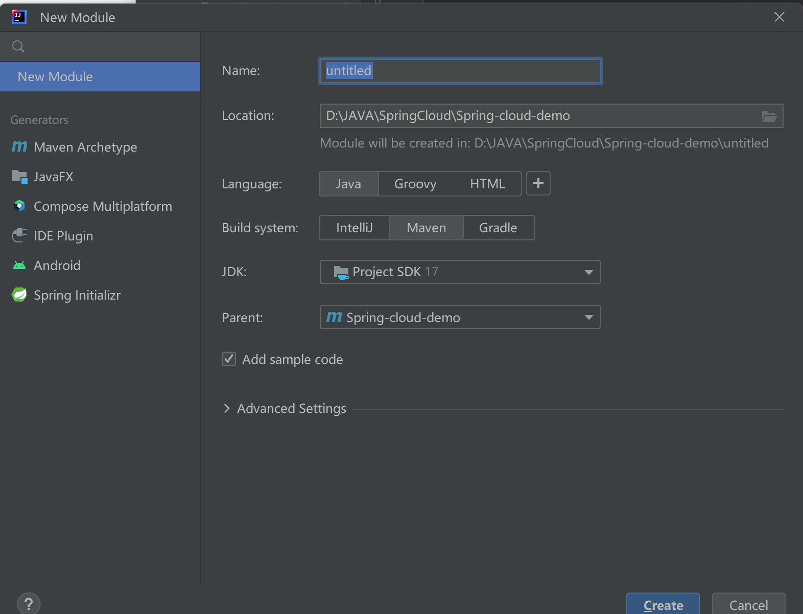 创建子项目: