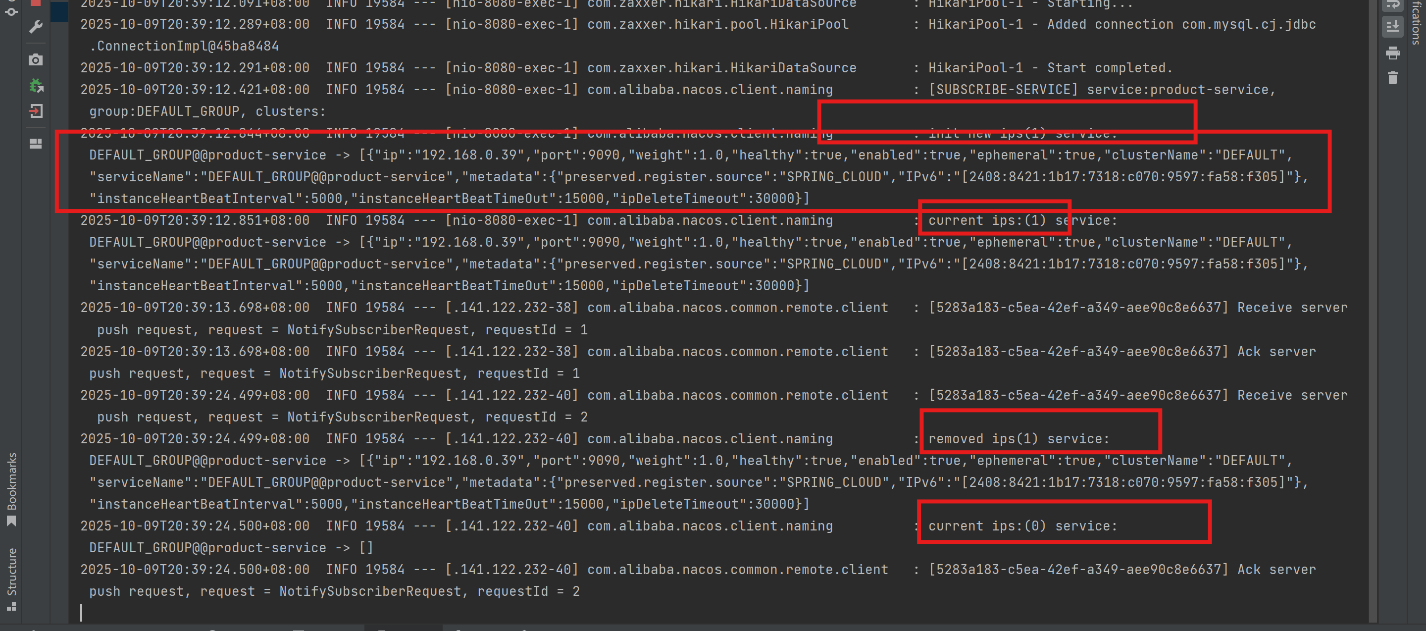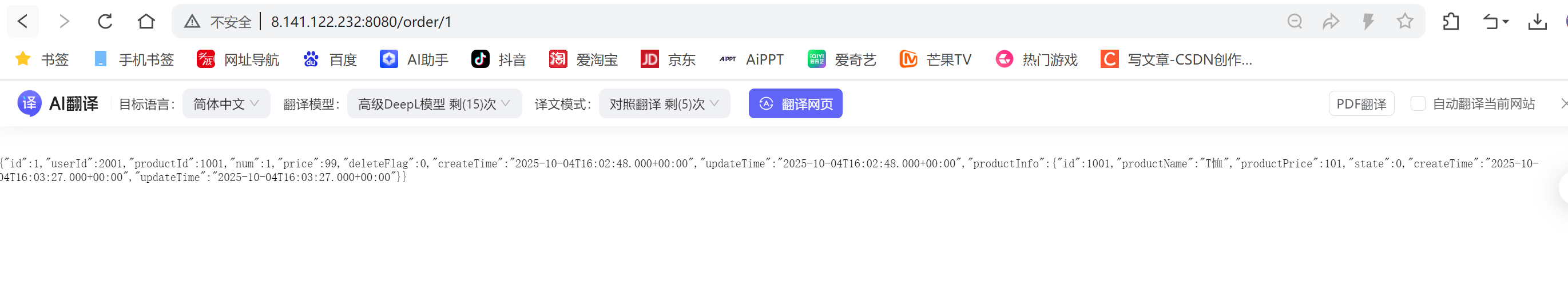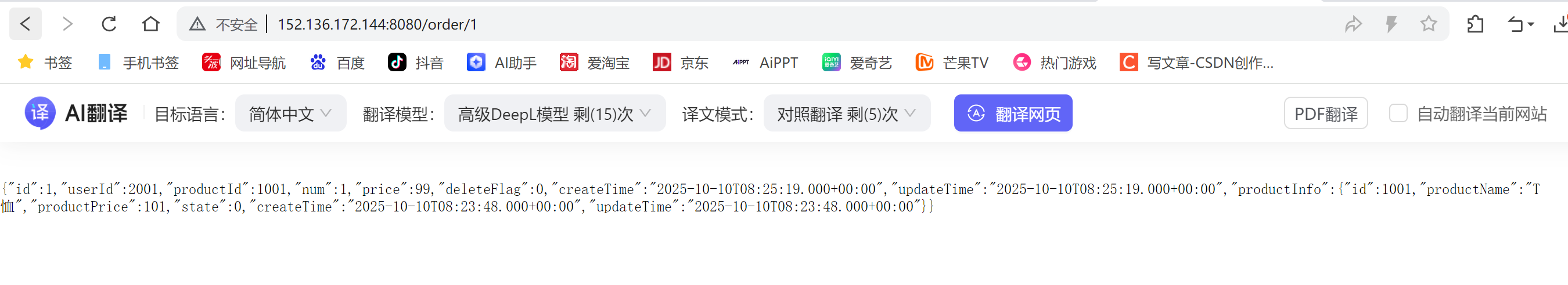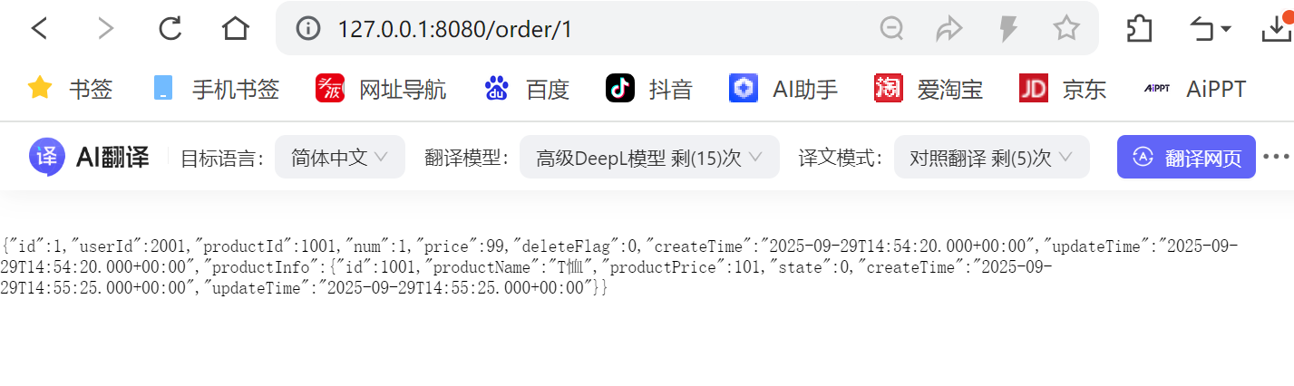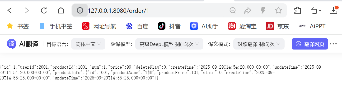 测试,重启服务, 访问接⼝, 观察⽇志 http://127.0.0.1:10030/order/1
