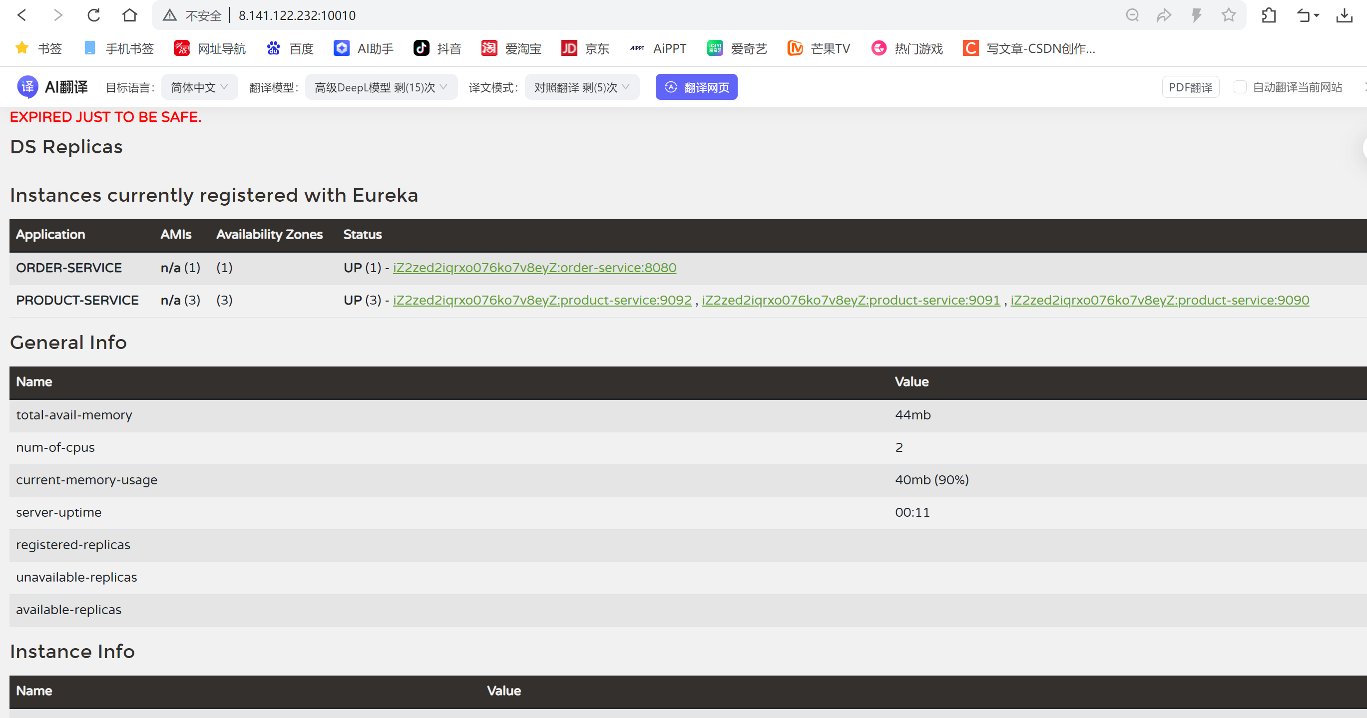 | 服务器1 | 产品服务实例1, 订单服务实例1 |
