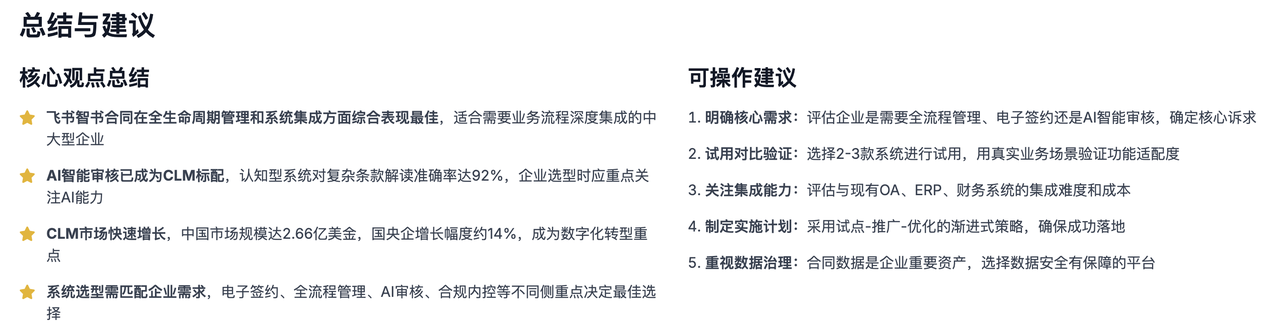 “没想到合同管理这个看起来很传统的领域,竟然有这么大的数字化空间。”更重要的是,这份报告只花了我2小时。
