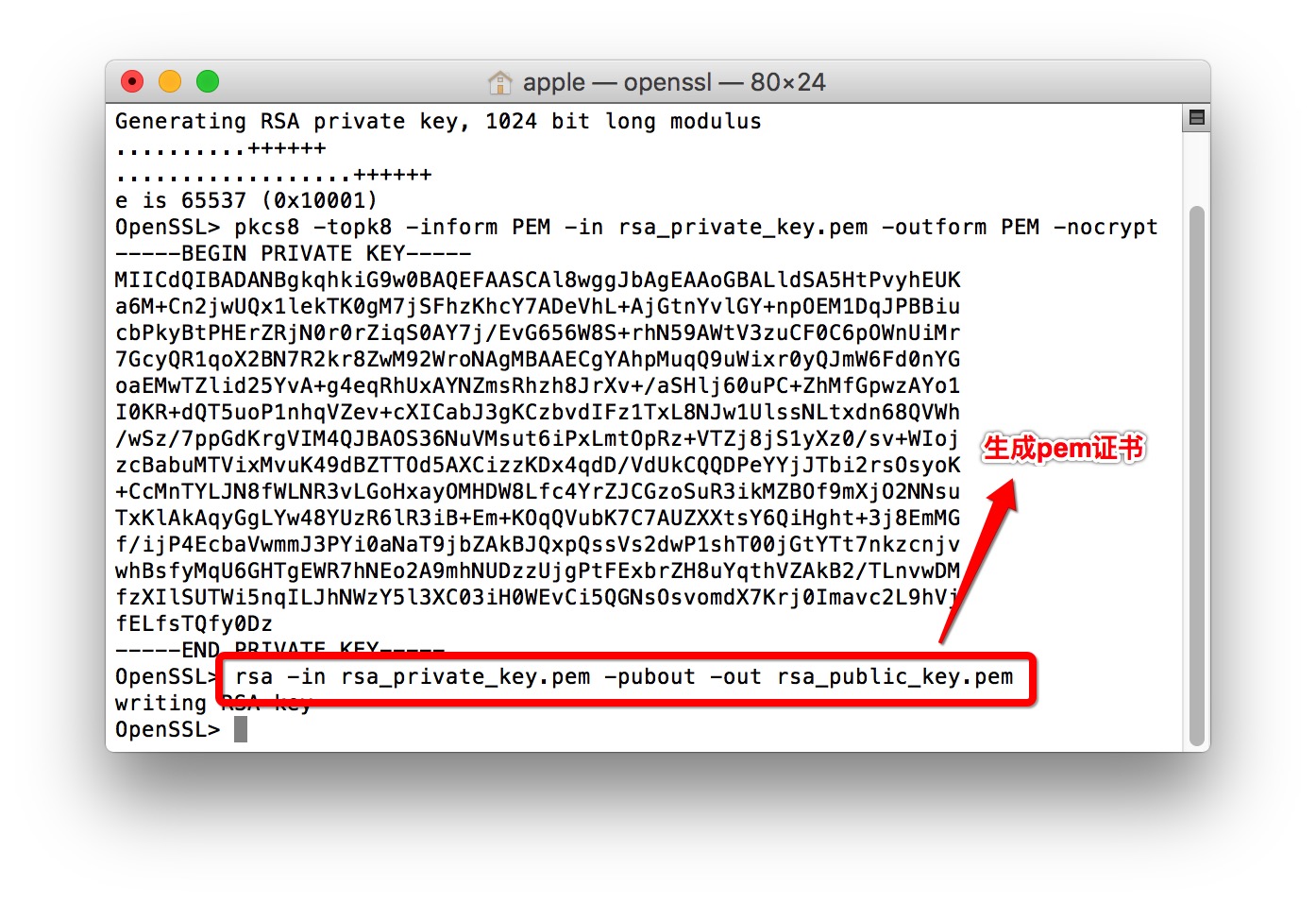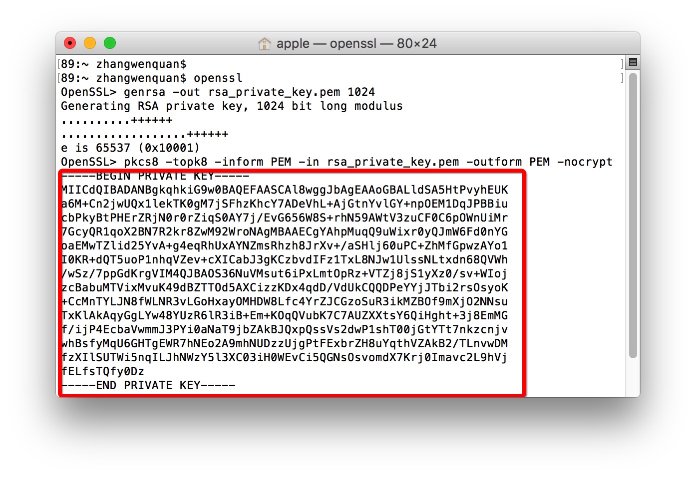 这个红色的框是pkcs8 格式的 要记得复制下来 后台要用。