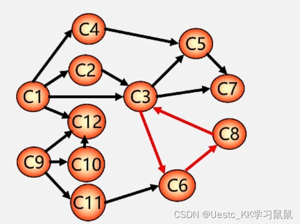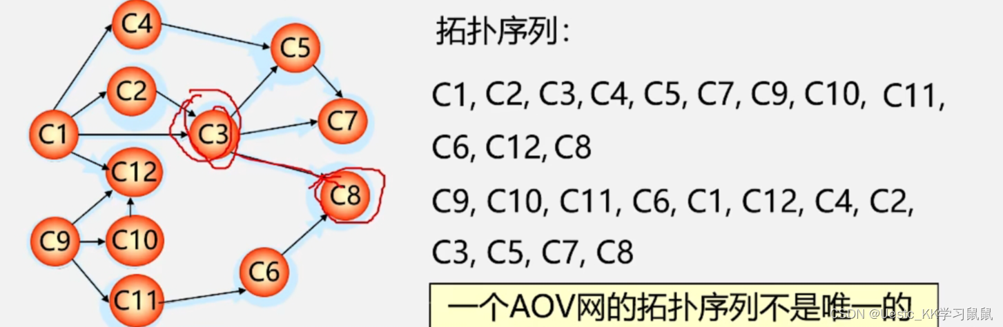由于C3有前驱结点C8,故C3无法删除,则排序后会剩下: