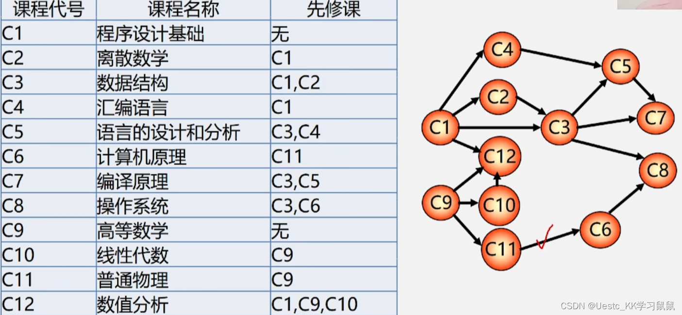 拓扑排序:在AOV网没有回路的前提下,我们将全部活动排列成一个线性序列,使得若AOV网中有弧<i, j>存在,则在这个序列中,i一定排在j的前面,具有这种性质的线性序列称为拓扑有序序列,相应的拓扑有序排序的算法称为拓扑排序。