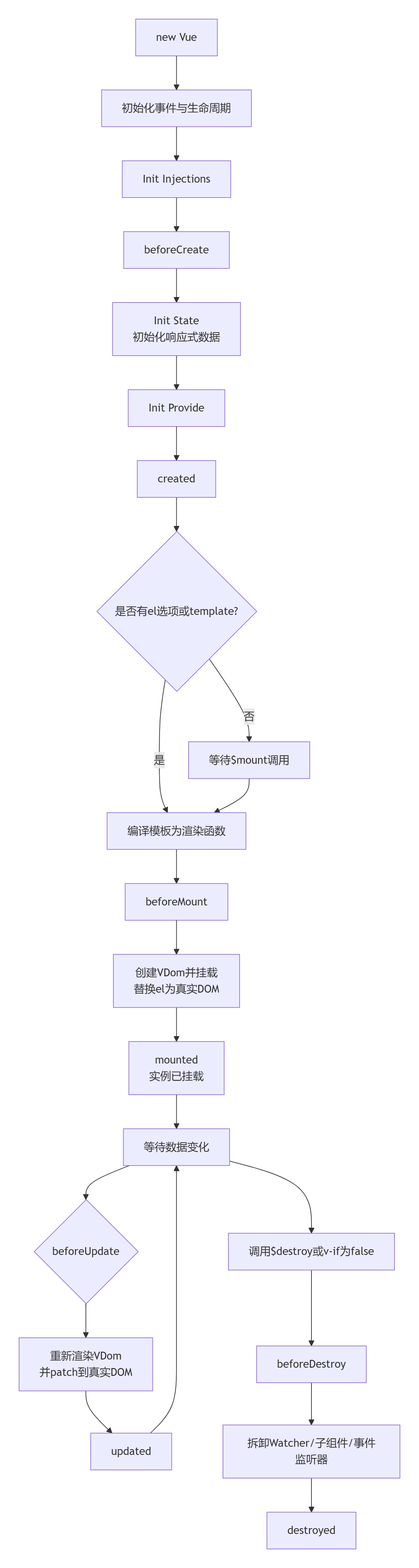 要理解 created,必须了解 Vue 实例的完整初始化流程。下图展示了 created 钩子在整个组件初始化流程中的关键作用: