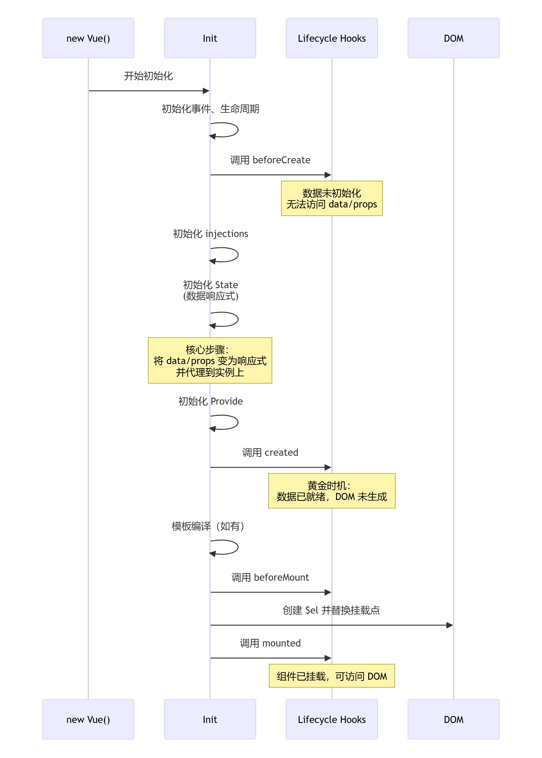| 定位 | 数据响应式初始化完成,DOM 未生成的“黄金初始化时机” |