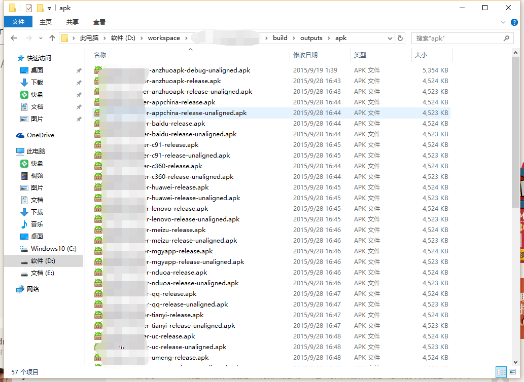 接下来,你就可以直接输入命令:gradle assembleRelease,就可以一次性生成所有的渠道包了: