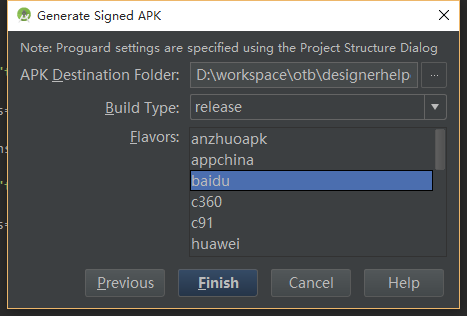 如果只是想生成单个渠道的包呢?可以用命令行单独生成,比如:
